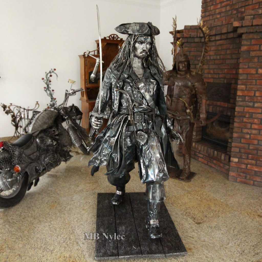 W naszej ofercie znajdą Państwo wyjątkowe rzeźby ręcznie wykonane ze stali. Poniższa rzeźba przedstawia jedną z postaci występującą w filmie Piraci z Karaibów, postać ta grana jest przez Johnnego Depp-a. Część z naszych rzeźb mogą oglądnąć Państwo na żywo w naszej galerii w Dębicy. Na zamówienie możemy wykonać dowolną rzeźbę ze stali według Państwa życzenia.